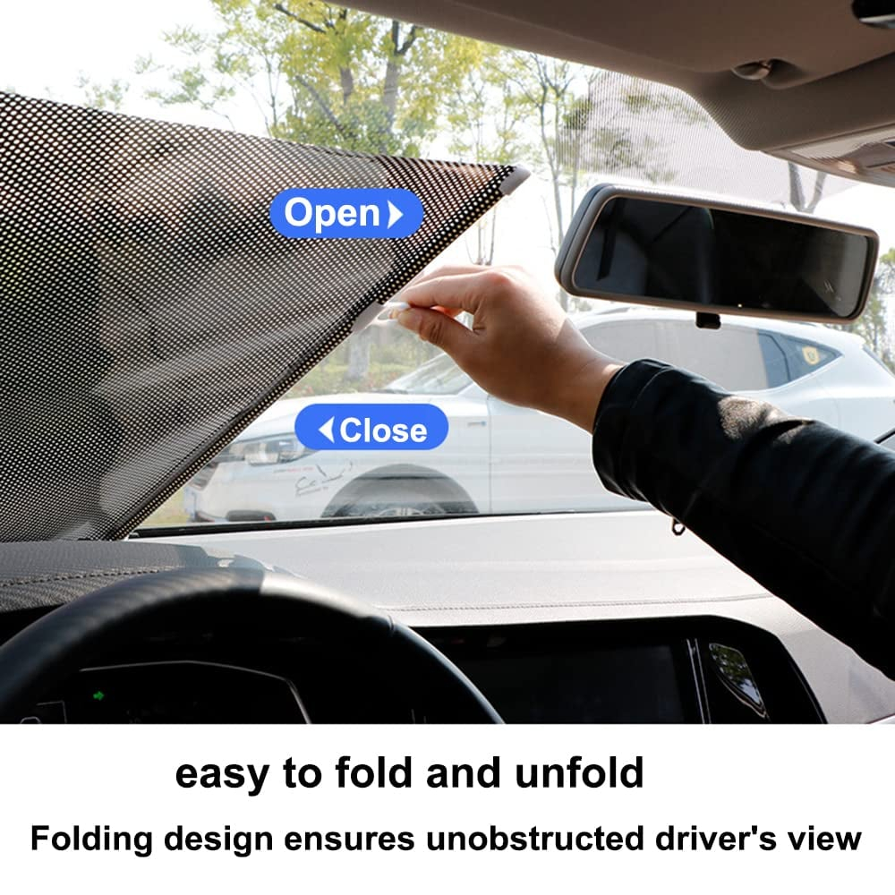 ONE BUTTON TO QUICK RETRACT:The adjustable car window shade is designed with a quick retract button, just press the button on the side of the window shade, and it will automatically retract after one second, and you can easily retract the car sunshade.